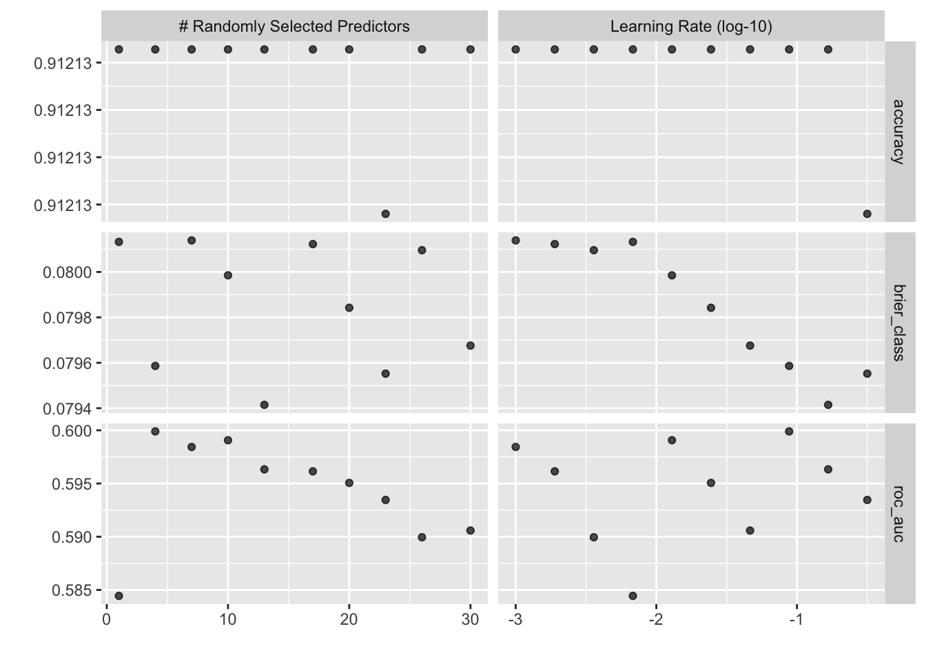 sparklyrsupports the feature that downloads the predictions from each parameter and resample combination. Keep in mind that this will roughly double the amount of data downloaded from Databricks. In most cases this is not a problem, but for a very large resampled data set it may become one. To learn how to turn that feature on, see Tune Tidymodels in Spark - Retrieving predictions