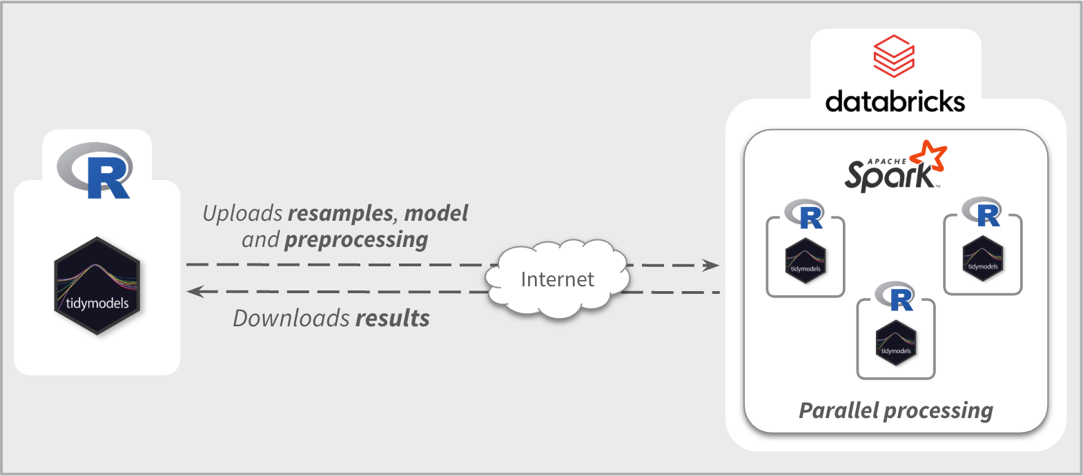 sparklyr enables you to offload Tidymodels grid search tuning to Databricks. Tidymodels is a collection of packages designed to work together to provide everything from resampling, to preprocessing, to model tuning, to performance measurement.